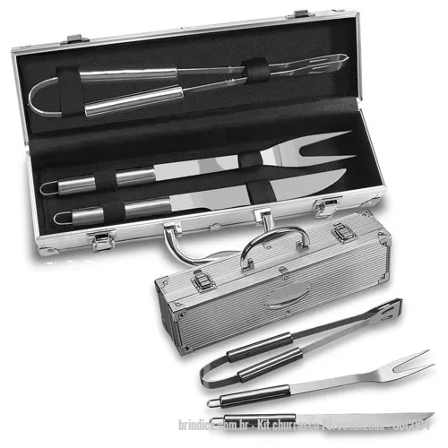 Conjunto Para Churrasco Com 3 Peças De Inox, Maleta De Alúminio. Conteúdo: Faca, Garfo E Pegador. Tamanho Da Maleta 37 X 12 X 8cm. Veja mais: Kit churrasco personalizado...
