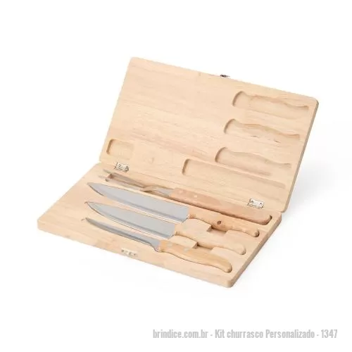 Kit Churrasco 4 Peças Em Estojo De Madeira. Contém Três Facas E Um Garfo. 3 Cm X 35,4 Cm X 19,8 Cm. Veja mais: Kit churrasco personalizado...