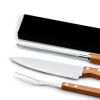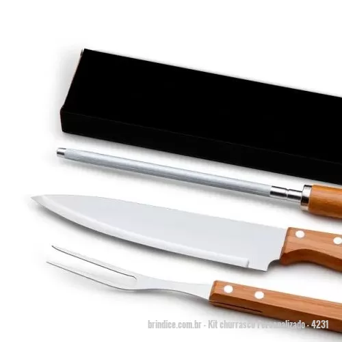 Kit Churrasco Econômico Com Faca 8'', Garfo E Chaira Em Bambu/aço Inox.. Veja mais: Kit churrasco personalizado... churrasco, kit churrasco, dia dos pais, fim de ano, bambu