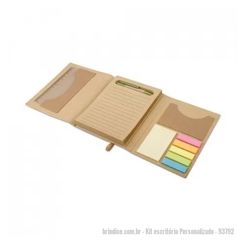 Kit Para Escritório Em Cartão. Composto Por Caderno (80 Folhas Pautadas Em Papel Reciclado), 6 Blocos Adesivados (25 Folhas Cada), 1 Régua De 12 Cm, 1 Esferográfica Em Papel Kraft E Suporte Para Cartões De Visita. Escrita Em Azul.. Veja mais: Kit escritório personalizado... Kit escritório, ecológico, papel reciclado, pautadas, cartão