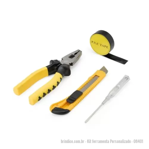 Kit De Ferramentas Pensado Para Facilitar O Seu Dia A Dia. Composto Por Chave De Fenda Teste, Estilete, Alicate E Fita Pvc, Oferece Tudo O Que Você Precisa Para Resolver Pequenos Problemas E Imprevistos. Todas As Ferramentas Possuem Acabamento Em Plástico Resistente, Garantindo Durabilidade E Conforto Durante O Uso. Esse é O Kit Ideal Para Quem Busca Praticidade E Eficiência Nas Tarefas Diárias.. Veja mais: Kit ferramenta personalizado... Kit Ferramenta, utensílios, quatro peças