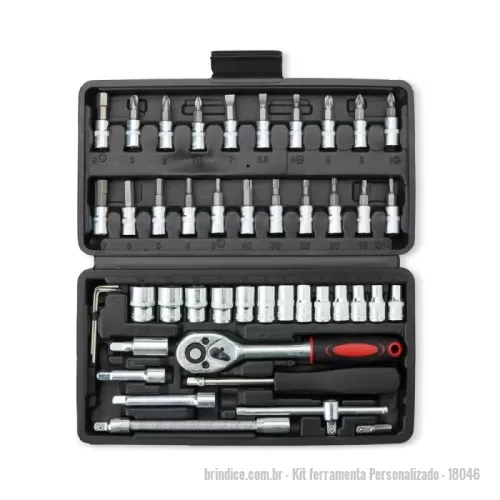 Solução Para Reparos, Garantindo Precisão Ao Apertar Ou Afrouxar Parafusos. Nosso Kit Com 45 Peças é Perfeito Para Diferentes Tarefas De Manutenção. Composto Por 1 Chave Catraca Reversível, 13 Soquetes, 21 Soquetes Com Bits, 1 Ponta Torx, 3 Chaves Hexagonais, 1 Cabo Fixo, 1 Junta Universal, 1 Cabo De Força Em T, 1 Adaptador De Bits E 2 Extensões Flexíveis. As Peças Vêm Organizadas Em Uma Maleta De Plástico Resistente, Garantindo Que Tudo Fique Sempre Em Ordem E Fácil De Transportar.. Veja mais: Kit ferramenta personalizado... Kit ferramenta, estojo de ferramentas, maleta, 45 peças