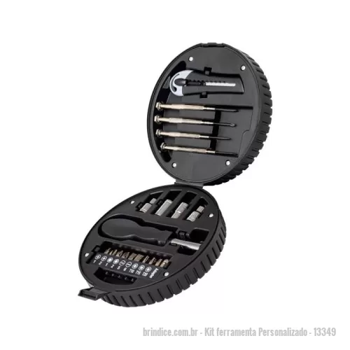 Kit Ferramenta 20 Peças Com Estojo Formato Pneu Em Plástico Resistente. Pneu Preto Com Aro Prata, Possui Trava Lateral. Contém: 2 Mini Chaves De Fenda E 2 Mini Chaves Phillips, Estilete, 4 Extensores Bocais(7mm, 8mm, 9mm E 10mm), Chave Canhão E Conjunto 10 Pontas(4 Chaves Phillips, 2 Chaves Fenda, 3 Chaves Torx E Um Adaptador).. Veja mais: Kit ferramenta personalizado... Kit ferramenta, estojo de ferramentas, maleta, 20 peças