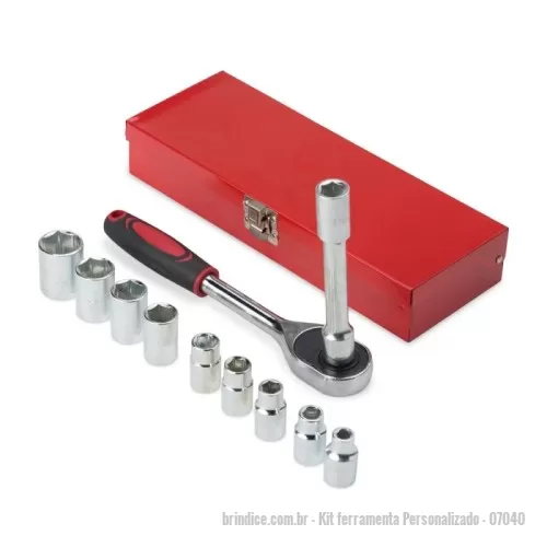 Kit Ferramenta Com 12 Peças Em Estojo Metálico. Contém: 1 Chave Catraca, 1 Chave Extensora E 10 Soquetes. Veja mais: Kit ferramenta personalizado... Kit ferramenta, estojo de ferramentas, maleta, metal, 12 peças, doze
