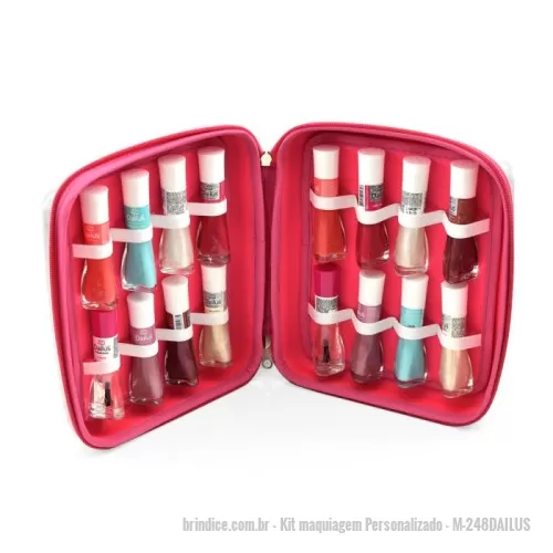 Estojo Com Tiras De Elástico Para Acomodar Esmaltes - Dailus Estojo Com Berço Para Acomodar Esmaltes dailus com Estampa Aplicada Em Sublimação. Peça Desenvolvida Sobre A Plataforma Da Peça M-248 Desenvolvimento Sobre Medida Para Emabalagens Especiais E Divulgação De Produtos.. Veja mais: Kit maquiagem personalizado... necessaire personalizada, nécessaire personalizável, necessaire promocional, nécessaire para brinde, nécessaire para brinde promocional, nécessaire customizada, nécessaire customizável, personalização de nécessaire, necessaire para ação promocional, case