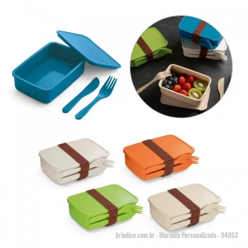 Marmita Hermética Em Fibra De Bambu (50%) E Pp (50%) Com Compartimento Com Capacidade Até 600 Ml. Contém Banda Elástica Com Suporte Para 2 Talheres, Inclusos: Garfo E Faca. Apto Para Microondas (retirar A Tampa). Food Grade. 165 X 111 X 50 Mm. Veja mais: Marmita personalizada... marmita