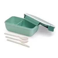 Marmita Dupla Em Fibra De Trigo Livre De Bpa, Sendo Um Compartimento De 600ml Com Tampa De Bambu E Outro Compartimento De 500ml Com Suporte Para Talheres De Fibra De Trigo. Possui Uma Divisória Removível E Elástico Para Um Transporte Seguro. Acompanha Garfo, Faca E Colher. Obs: O Tempo De Aquecimento No Micro-ondas Não Deve Ultrapassar 3 Minutos.