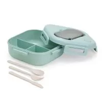 Marmita Dupla Em Fibra De Trigo Livre De Bpa, Sendo Um Compartimento De 600ml Com Tampa De Bambu E Outro Compartimento De 500ml Com Suporte Para Talheres De Fibra De Trigo. Possui Uma Divisória Removível E Elástico Para Um Transporte Seguro. Acompanha Garfo, Faca E Colher. Obs: O Tempo De Aquecimento No Micro-ondas Não Deve Ultrapassar 3 Minutos.