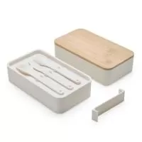 Marmita Dupla Em Fibra De Trigo Livre De Bpa, Sendo Um Compartimento De 600ml Com Tampa De Bambu E Outro Compartimento De 500ml Com Suporte Para Talheres De Fibra De Trigo. Possui Uma Divisória Removível E Elástico Para Um Transporte Seguro. Acompanha Garfo, Faca E Colher. Obs: O Tempo De Aquecimento No Micro-ondas Não Deve Ultrapassar 3 Minutos.
