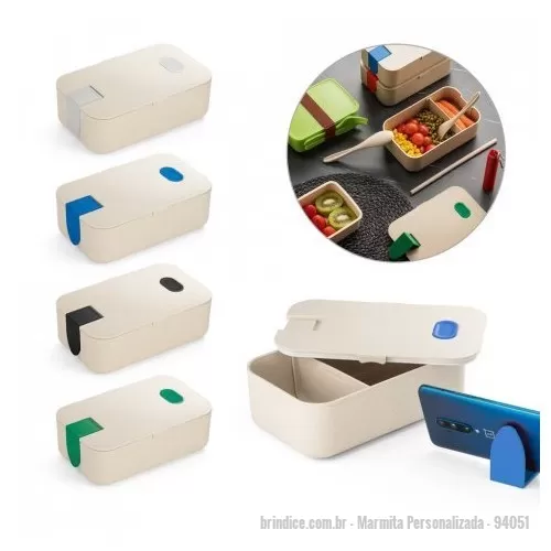 Marmita Hermética Em Fibra De Bambu (60%) E Pp (40%) Com Um Compartimento Com Capacidade Até 1 L. Contém Suporte Para Celular. Apto Para Micro-ondas, Retirando A Tampa. Certificação Eu Food Grade.. Veja mais: Marmita personalizada... Marmita, refeição, lancheira, alimento, fibra de bambu, ecológico