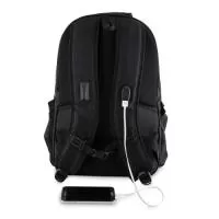 Mochila De Nylon Resistente à água, Com Capacidade De 29 Litros Com 6 Compartimentos, Sendo O Principal Com Bolso Para Notebook De 15,6 Polegadas E Um Compartimento Com Abertura Lateral Para Armazenar Documentos. Contém Divisórias Internas Para Acessórios E Porta-chaves. A Mochila Possui Adaptador Usb Externo, Bolso Antifurto Nas Costas, Bolso Na Lateral Com Elástico, Engate Para Malas De Viagem, área Costada Com Revestimento Espumado E Alças Com Bolsos Integrados Para Cartões Ou Moedas.