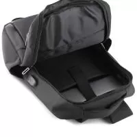 Mochila Em Couro Sintético 17 Litros Resistente à água Com Cinco Compartimentos, Sendo O Principal Com Bolso Para Notebook 156. Com Divisórias Internas Para Acessórios, A Mochila Possui Suporte Externo Usb, Alça Para Encaixe Em Malas De Viagem E Duas Alças De Mãos, Sendo Uma Delas Lateral Para O Transporte Da Mochila No Modo Pasta.