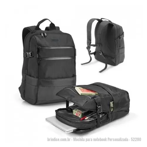 Mochila Para Notebook Em 900d E C. Sintético Com 2 Compartimentos Principais E Bolso Frontal. O Compartimento Posterior é Forrado E Tem Divisória Almofadada Para Notebook Até 15,6" E Bolso Em Tela, Com Zíper. O Segundo Compartimento Também é Forrado E Contém Diversos Bolsos Interiores. Parte Posterior E Alças Almofadadas.
