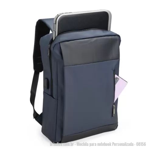 Mochila Para Notebook Em Tecido Poliéster 600d E Interior Em 210d. Parte Externa: 2 Bolsos Frontais Com Ziper; 1 Bolso Lateral; Alça De Mão E Ombro Acolchoadas; Conector Usb Externo Na Lateral; Engate Para Mala De Viagem. Parte Interna: Compartimento Acolchoado Para Notebook De 39x27cm; Tamanho Total Do Notebook - 15,6¨ 2 Porta Objetos; 2 Porta Canetas.