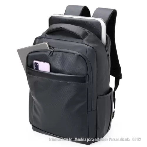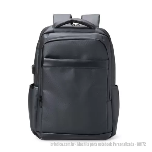 Nossa Mochila De 21 Litros Combina Funcionalidade E Conforto! Feita Em Couro Sintético Resistente à água E Com Design Inteligente, é Perfeita Para Impressionar No Mundo Corporativo. Conta Com Quatro Compartimentos Estratégicos: Um Frontal, Outro Com Bolsos E Divisórias Para Documentos E Canetas, Um Compartimento Antifurto Para Proteger Os Itens Mais Valiosos E Um Principal, Com Espaço Para Notebooks De Até 15,6" E Entrada Para Cabo Usb. Além Disso, Possui Plaquinha Para Personalização Exclusiva, Dois Bolsos Laterais, Alças Reguláveis E Acolchoadas Que Distribuem O Peso De Forma Equilibrada, Acabamentos Refletivos E Uma Parte Traseira Acolchoada, Garantindo Mais Conforto. Para Completar, Conta Com Engate Para Malas De Viagem, Sendo A Parceira Ideal Além Do Dia A Dia Do Trabalho. Acompanha Plaquinha Metálica Personalizável.. Veja mais: Mochila para notebook personalizada... Mochila, mochila para notebook, couro sintético