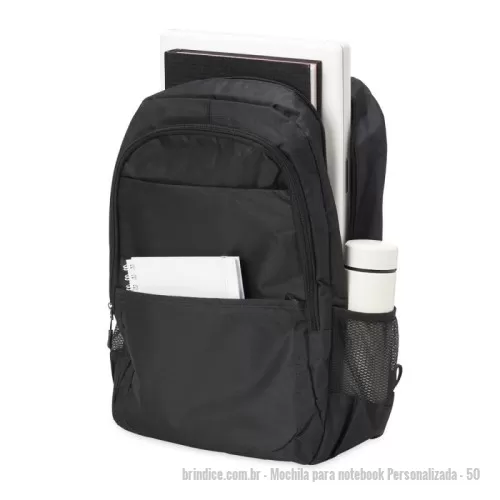 Mochila Para Notebook Em 600d De Alta Densidade Com Compartimento Forrado, Com Divisória Almofadada Para Notebook Até 17'' E Diversos Bolsos Interiores. 2 Bolsos Laterais Em Tela Mesh E 2 Bolsos Frontais. Parte Posterior Almofadada, Com Sistema De Apoio Acolchoado Para As Costas E Alças Almofadadas. Placa Metálica Removível Com Imã, Para Fácil Gravação.