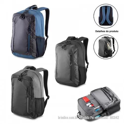 Mochila Para Notebook Em 300d Com Placa De Metal Preta Personalizável E 2 Compartimentos Principais. Os 2 Bolsos Almofadados São Compatíveis Com Computador Até 17 E Com Um Tablet De 9,7 . Tem Ainda Mais 2 Bolsos Nas Alças (1 Com Zipper), Bolso Oculto Nas Costas Da Mochila Com Zipper, Bolso No Topo Com Zipper E Bolso Aberto Na Lateral Com Entrada Usb. Contém Ainda Tira De Transporte Para Trolley E Alças E Parte Posterior Almofadadas.
