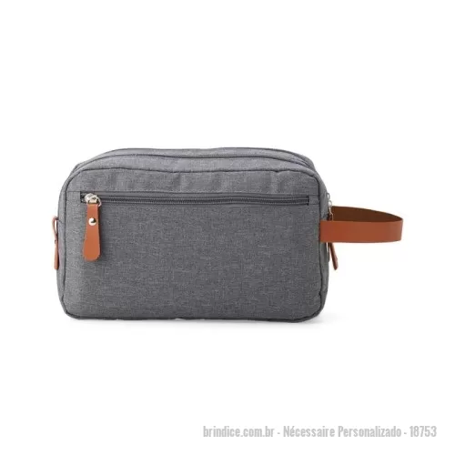 Nécessaire Confeccionada Em Poliéster, Com Detalhes Em Couro Sintético. Possui Três Compartimentos Com Zíper. Na Parte Interna, Contém 5 Bolsos, Sendo Dois De Tela, E Alça Para Transporte.. Veja mais: Nécessaire personalizado... Nécessaire, bolsa para cosméticos, poliéster