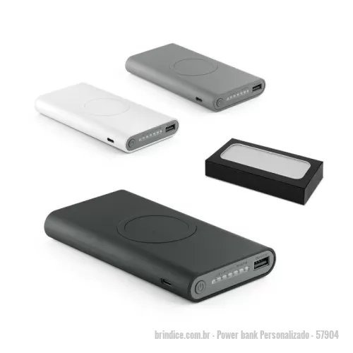 Bateria Portátil Em Abs Com Acabamento Emborrachado E Carregador Wireless Super Rápido. Bateria De Lítio Com Capacidade De 10.000 Mah E Tempo De Vida ? 500 Ciclos. Os 15w De Potência Permitem Carregamento Super Rápido Dos Dispositivos Móvies. Indicador De Carga, Porta De Entrada Microusb, Porta De Entrada/saída Usb-c E Porta De Saída Usb-a. Incluso Cabo Usb-c Para Carregar A Bateria. Compatível Com Dispositivos Móveis Com Tecnologia De Carregamento Sem Fios. Fornecida Em Caixa Presente. 135 X 75 X 20 Mm | Caixa: 150 X 95 X 25 Mm. Veja mais: Power bank personalizado... Power bank personalizado