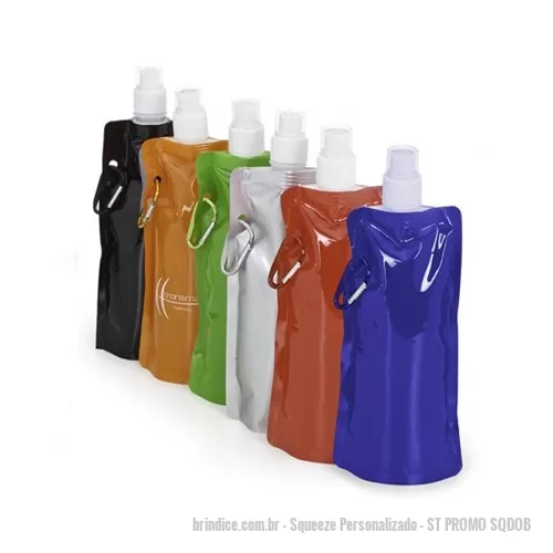 Squeeze De Plástico Dobrável Promocional, Peso 26 Gramas, Dimensões 26,5 X 12 Cm, Cor Azul, Branco, Prata, Vermelho, Verde, Preto E Laranja, Materia Prima PlÁstico, Capacidade 480 Ml. Veja mais: Squeeze personalizado...