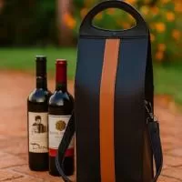DescriÇÃo: Porta Vinho Duplo 45x20x10cm Confeccionado Em Sintetico Prada Com AlÇa De Ombro RemovÍvel De MosquetÃo NÍquel, Fechamento BotÃo De PressÃo.