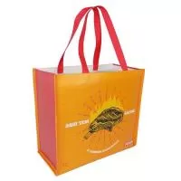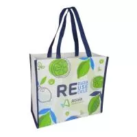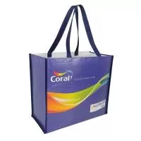 Sacola confeccionada em ráfia laminada, impressão digital U.V.