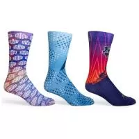 Meias de poliéster com personalização sublimada. Temos 32 anos de experiência na fabricação desse produto.