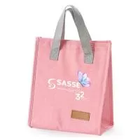 Sacola térmica em poliéster com detalhes e alças em algodão e capacidade para até 9 litros. Conta com revestimento térmico em folha de alumínio.