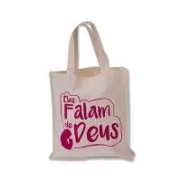 Sacola em algodão cru, tamanho 30 x 35 cm e gravação em silk