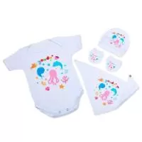 Conjunto Infantil Em Poliéster Branco, Ideal Para Personalização E Brindes Especiais. O Kit Inclui: Body Manga Curta Liso (37x22cm), Confeccionado Em 100% Poliéster, Garantindo Conforto E Maciez. Tamanho único Para Bebês De 2 A 12 Meses. Babador Tipo Bandana (20x16cm), Também Em 100% Poliéster, Com Fecho Metálico Seguro E Prático. Touca Branca (15x14cm), Com Punho Em Suedine Para Maior Conforto, Ajustando-se Perfeitamente à Cabeça Do Bebê. Luvas Brancas (9x6cm), Confeccionadas Em Poliéster, Com Punho Em Suedine Para Um Toque Macio E Delicado. Um Brinde Especial E Delicado Da Youdu Brindes, Perfeito Para Eventos Infantis E Presentes Personalizados.