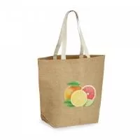 Sacola. Juta: 360 g/m². Com laminado no interior. Alças curtas acolchoadas. 430 x 340 x 175 mm